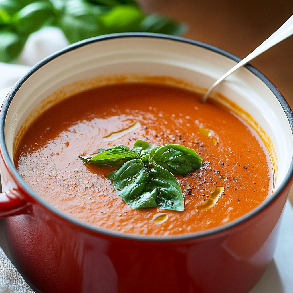 Roasted tomato basil soup is a heartwarming dish that combines the sweetness of ripe tomatoes with the aromatic essence of fresh basil. This comforting soup is perfect for chilly evenings or cozy afternoons, offering a rich, velvety texture that warms both the body and soul. With its vibrant color and delightful flavor, it pairs wonderfully with crusty bread or grilled cheese, making it an ideal meal for any occasion.