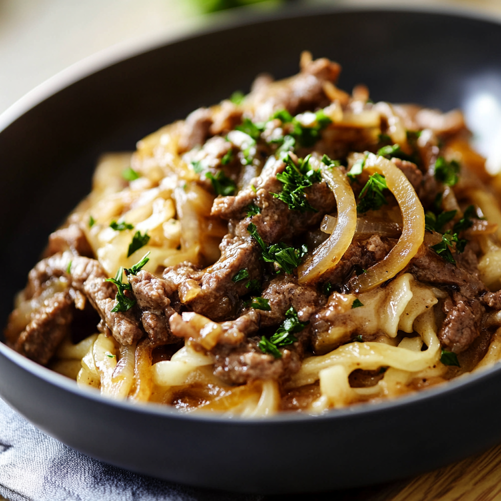 French onion beef and noodles is the ultimate comfort food, perfect for chilly evenings. This hearty dish features tender beef and perfectly cooked egg noodles enveloped in a savory caramelized onion sauce that warms the soul. With minimal prep time and maximum flavor, this recipe is ideal for both family dinners and cozy nights in. Serve it up with crusty bread or dive right in with a spoon—either way, your taste buds will thank you!