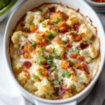 This loaded cauliflower casserole is not just another side dish; it’s an experience that brings people together around the table. With its creamy texture and cheesy goodness topped with crispy bacon bits, it’s bound to become your new family favorite! Enjoy every delicious bite!