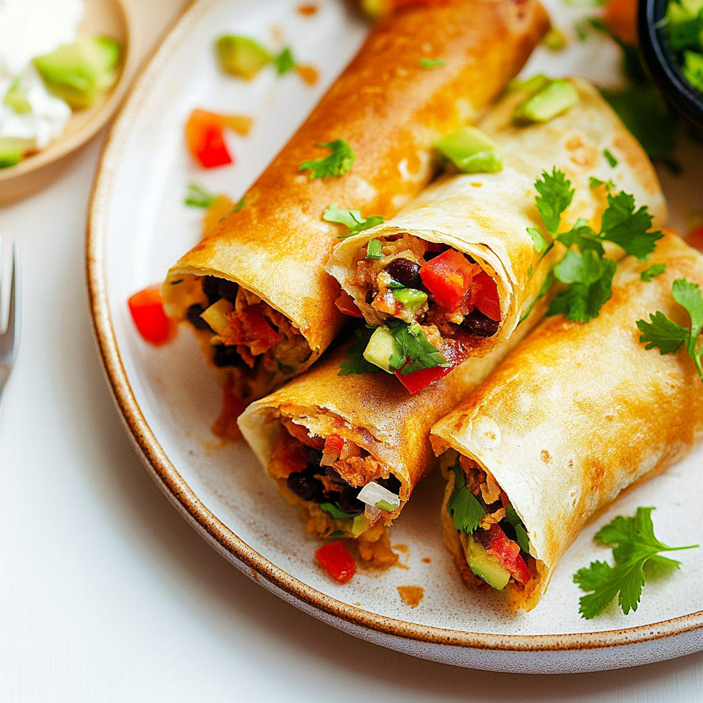 Begin by prepping your filling ahead of time. Roll your tortillas tightly, then fry them in hot oil until golden brown for that perfect crunch.