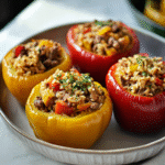 Enjoy these stunning stuffed peppers with rice and beef hot from the oven—they’re sure to be an instant hit at your dinner table!