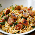 Chicken sausage orzo is a delightful dish that bursts with flavor, combining tender chicken sausage with perfectly cooked orzo pasta. Picture the warm, savory aroma wafting through your kitchen as you savor each bite.