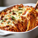 Baked spaghetti casserole is a comforting, family-friendly dish that layers tender pasta, savory ground meat, and gooey cheese in a rich marinara sauce. This hearty recipe is perfect for gatherings, bringing warmth and nostalgia with every bite. Easy to prepare and customizable, it guarantees a delightful meal everyone will love.