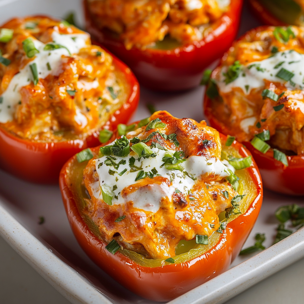 Buffalo chicken stuffed peppers are a deliciously vibrant dish that combines the bold flavors of buffalo chicken with creamy cheese, all nestled within colorful bell peppers. Perfect for game nights or casual dinners, these flavorful bites are sure to please everyone at the table. With a spicy kick and gooey texture, they offer a mouthwatering experience that balances heat and creaminess in every bite.