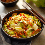 Add Veggies Gradually: Toss in the cabbage first; stir-fry until it wilts slightly and turns bright green. Then add bell peppers and carrots, cooking until they’re tender yet crisp—about 5-7 minutes.