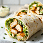 Chicken Caesar Wraps are a delicious and quick meal that combines juicy grilled chicken with fresh romaine lettuce, creamy Caesar dressing, and vibrant vegetables, all wrapped in a soft tortilla. Perfect for busy weeknights or picnics, these wraps offer an explosion of flavor in every bite. With simple ingredients and easy preparation, they are sure to become a family favorite!