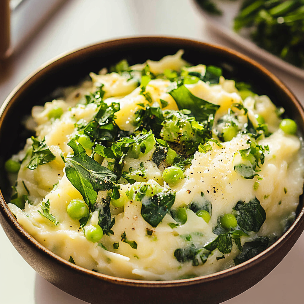 - The creamy potatoes mixed with vibrant greens create comfort food that sings