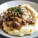Delicious Hamburger Gravy Over Mashed Potatoes