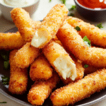 Sometimes, I whip up this mozzarella sticks recipe when friends come over; their smiles are priceless when they take that first gooey bite!