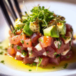 Tuna Tartare is the culinary equivalent of a warm hug on a chilly day, with its silky texture and vibrant flavors that dance like confetti on your taste buds. Imagine the fresh, oceanic essence of high-quality tuna mingling with sharp lime juice and a hint of sesame oil—it’s a flavor fiesta that whispers sweet nothings to your palate. This dish is perfect for impressing guests at dinner parties or simply indulging in a cozy evening at home.
