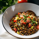 Revitalize your meals with this colorful lentil salad, brimming with fresh vegetables and a zesty dressing. Packed with protein-rich green lentils and crunchy cucumbers, this dish is perfect for summer picnics or cozy winter lunches. Its delightful flavors and textures make it an instant crowd-pleaser, ensuring everyone leaves the table satisfied. Easy to prepare and versatile enough for any occasion, this salad will quickly become a staple in your kitchen.