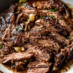 Shred and Serve!: After cooking, remove the beef from the slow cooker. Shred it using two forks—it’s incredibly tender! Mix shredded meat back with juices before serving.